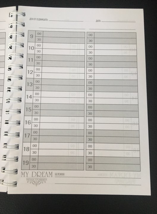За да подберете най-правилния график, който да ви бъде удобен и полезен, трябва да знаете какво искате да има в него. Ние можем да ви предложим такъв график, който сме направили за наше удобство и улеснение в процеса на работа. Разграфените часове започват от началото на нашия работен ден до приключването му. Както знаем, всяка една процедура е с различно времетраене, затова в нашия график часовете са отбелязани през 30 минути.